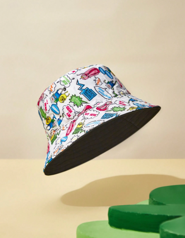 Cartoon boldness on one side, clean black on the other. The Adventure Bucket is a reversible double-face hat that flips your style in seconds. Playful edge meets streetwear practicality.