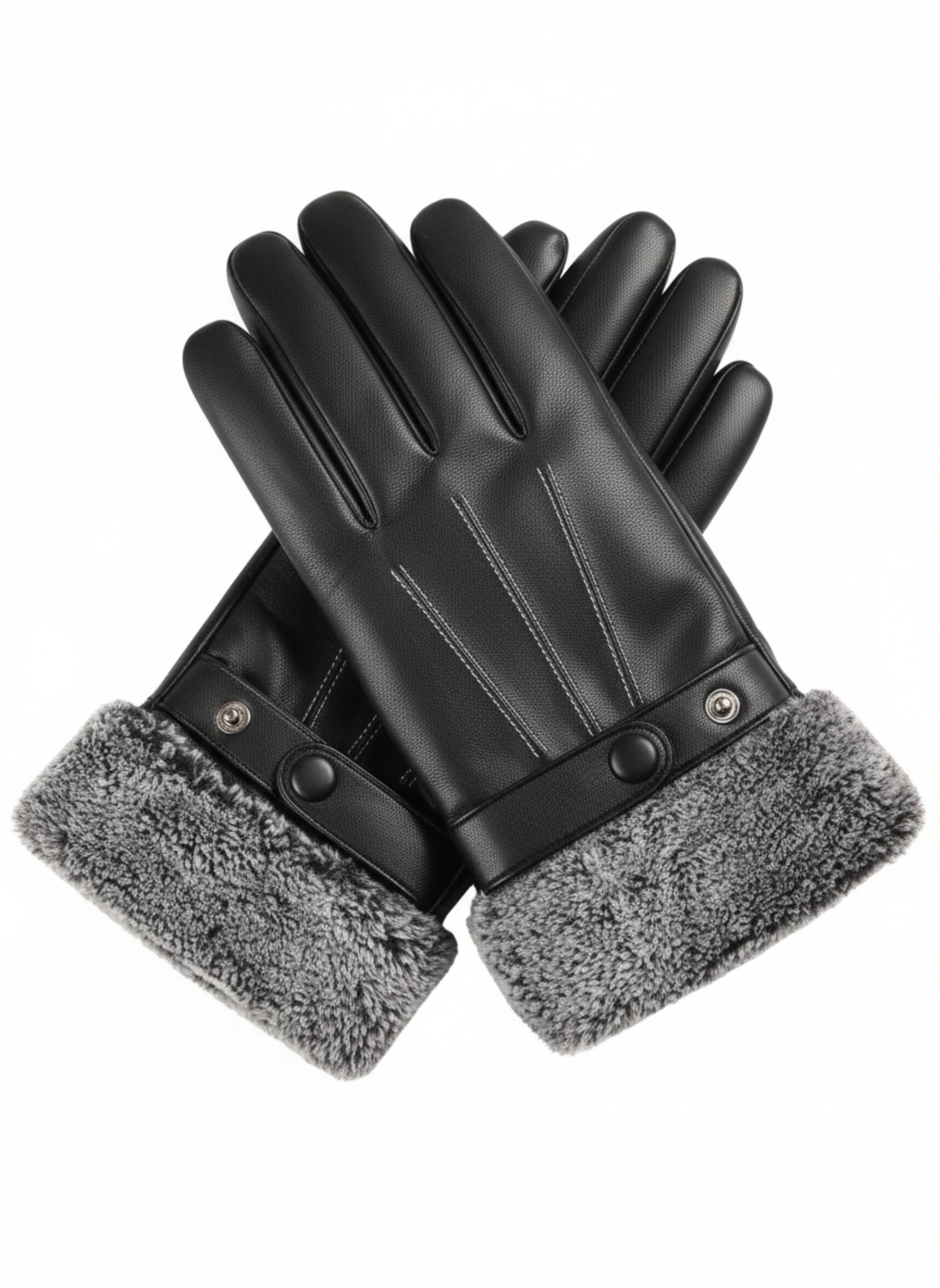 These leather gloves combine a smooth black exterior with a thick grey fur lining that locks in warmth from the first wear. Designed for cold mornings, long drives, and winter days that demand comfort without losing style.