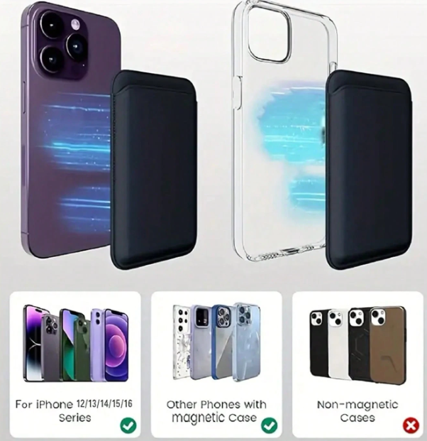 Your everyday essential — a sleek magnetic wallet that snaps directly onto your iPhone (MagSafe compatible). Built for those who value minimal bulk and maximum access, it keeps your most-used cards secure and always within reach.