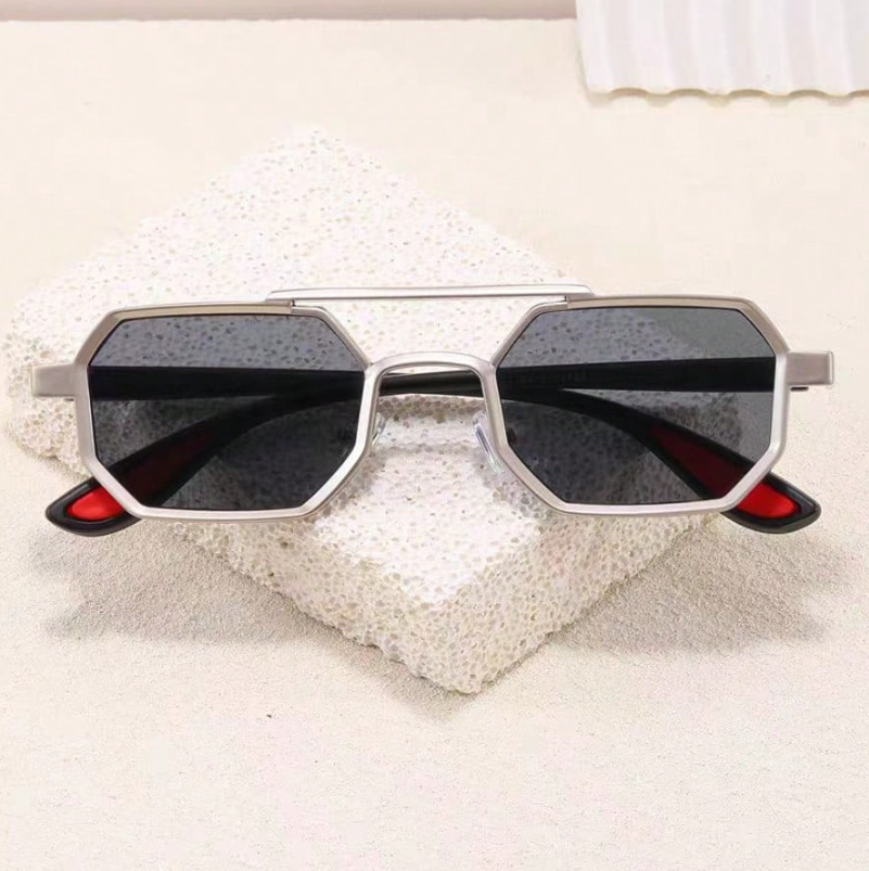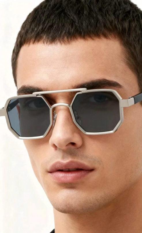 Engineered presence. Monument Hex combines a sculpted hex frame, dual-bridge bar, and precision-cut edges. Premium alloy hardware, anti-glare UV400 optics—built for statement wear that lasts.