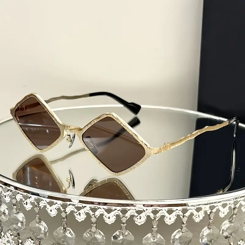 Crafted with a twisted golden zinc alloy frame and a unique geometric design,